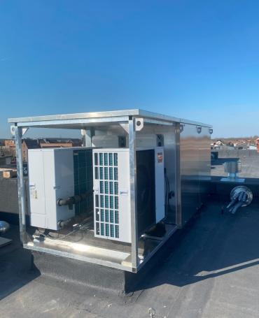 De Ecobox is een innovatieve verwarmingsoplossing die op het dak van een appartementsgebouw geplaatst wordt en acht appartementen voorziet van vloerverwarming en sanitair warm water. Dankzij de slimme samenwerking tussen warmtepompen, een buffervat en boiler wordt warmte efficiënt opgewekt, opgeslagen en verdeeld.